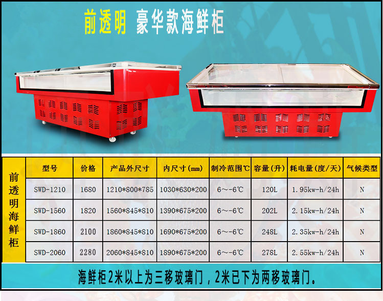 Jersey Snow 1560 Horizontal Front Transparent Seafood Cabinet Vegetable Meat Refrigerated Frozen Freezer