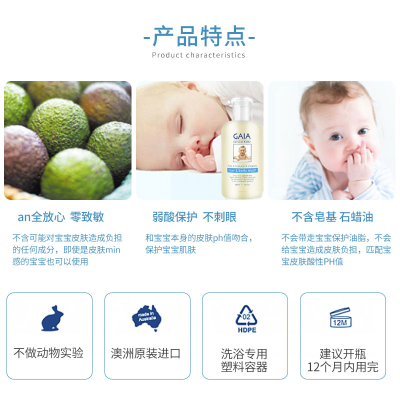 Australian GAIA baby wash two-in-one 500ml shampoo body lotion natural organic without irritation 200ml