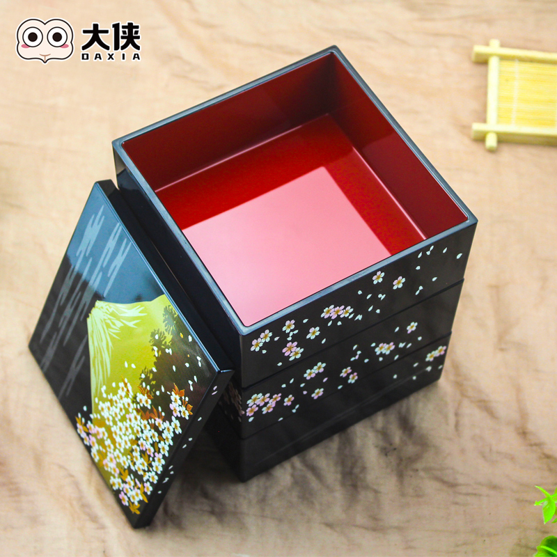 Small three-layer Japanese-style cherry blossom sushi box household lunch box printed picnic box snack box and wind food box