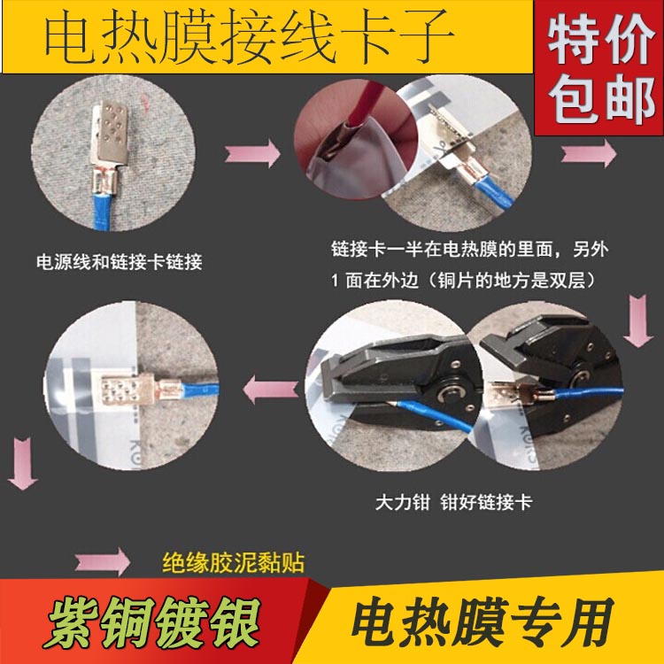 Electric heating film special wiring card electrical floor heating electric heating sheet terminal block cross-port vertical copper silver plating