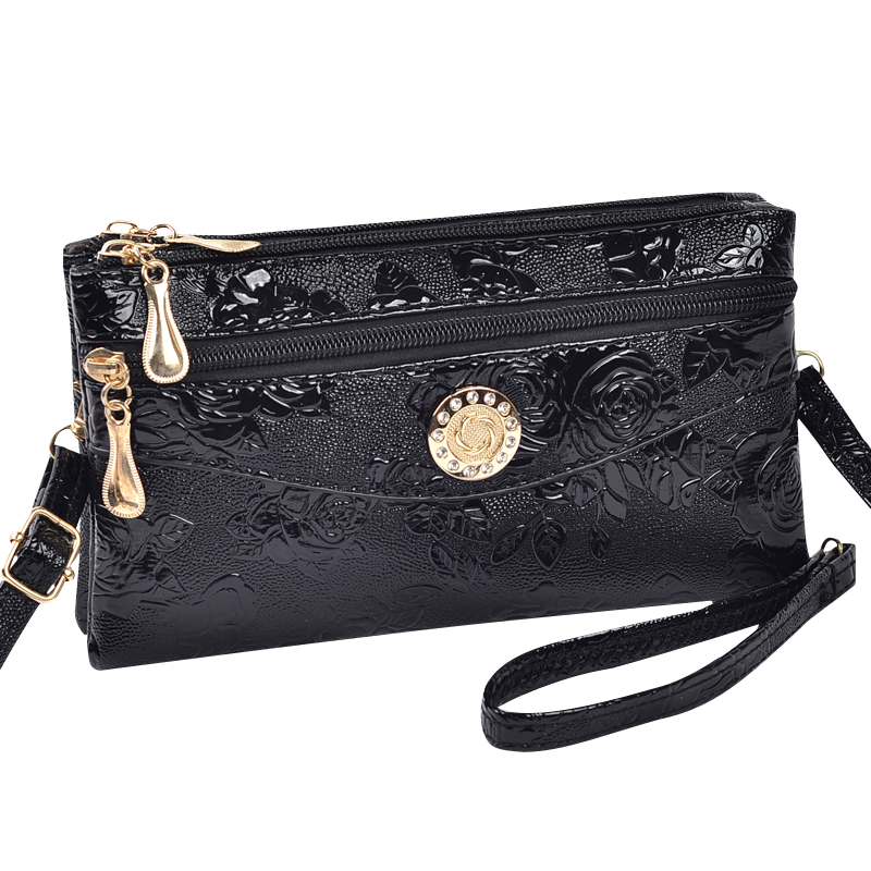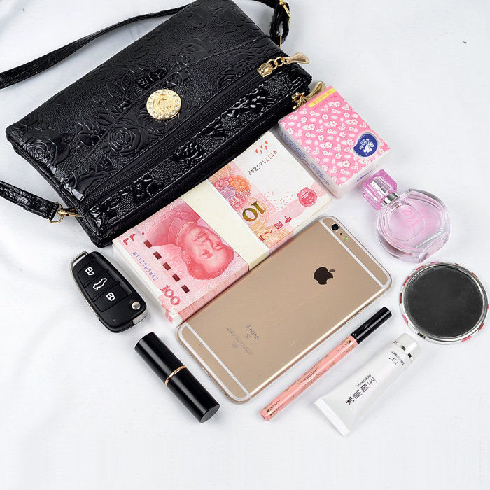 Bright leather embossed double shoulder slung women's bag 2022 summer new change key mobile phone hand small backpack bag