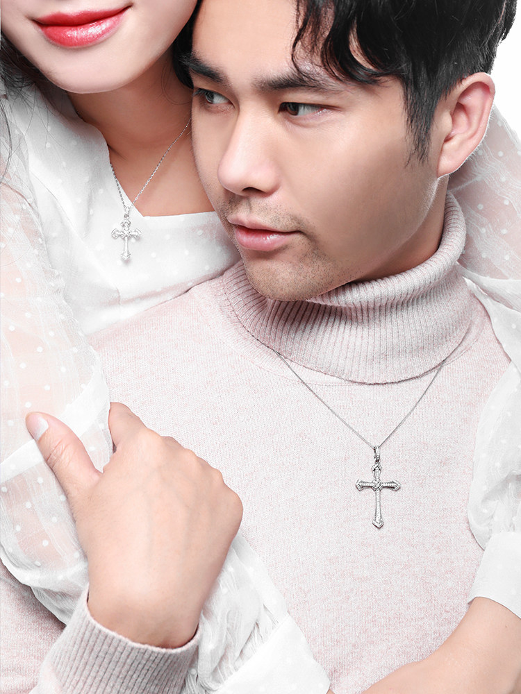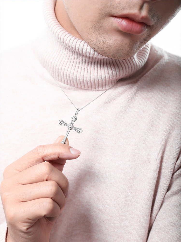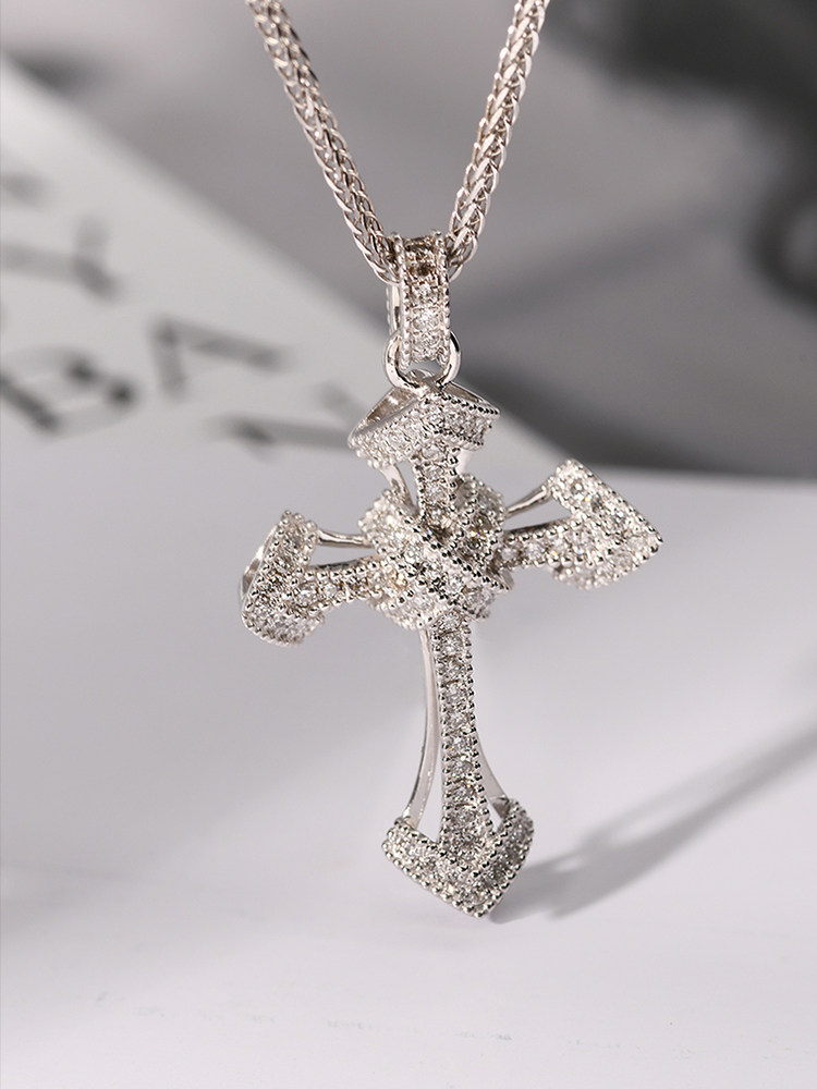 18K Platinum Men's Diamond Pendant Cross Diamond Necklace Custom Platinum Collarbone Chain Fashion Rome Ethos
