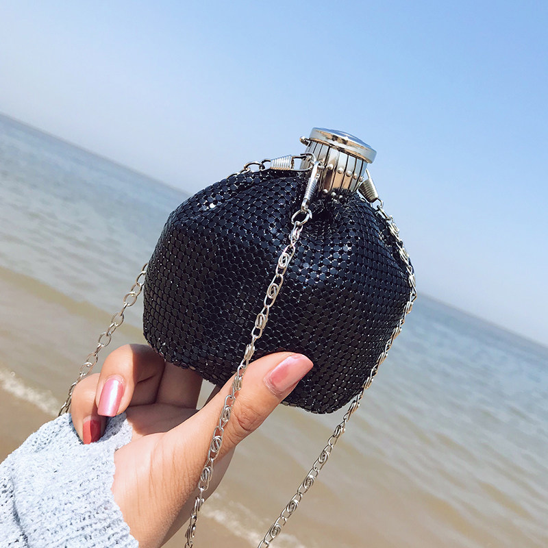 Mini bag women's 2021 new woven bucket bag sequined chain shoulder bag casual hip flask bag messenger bag