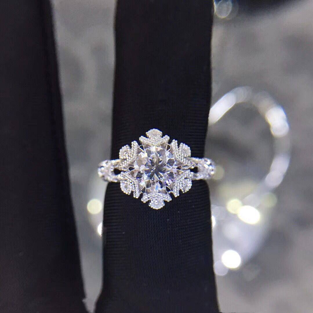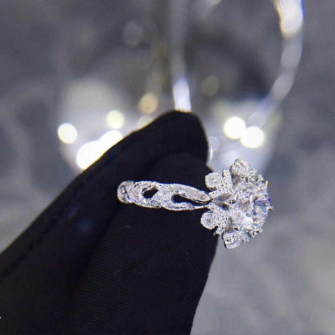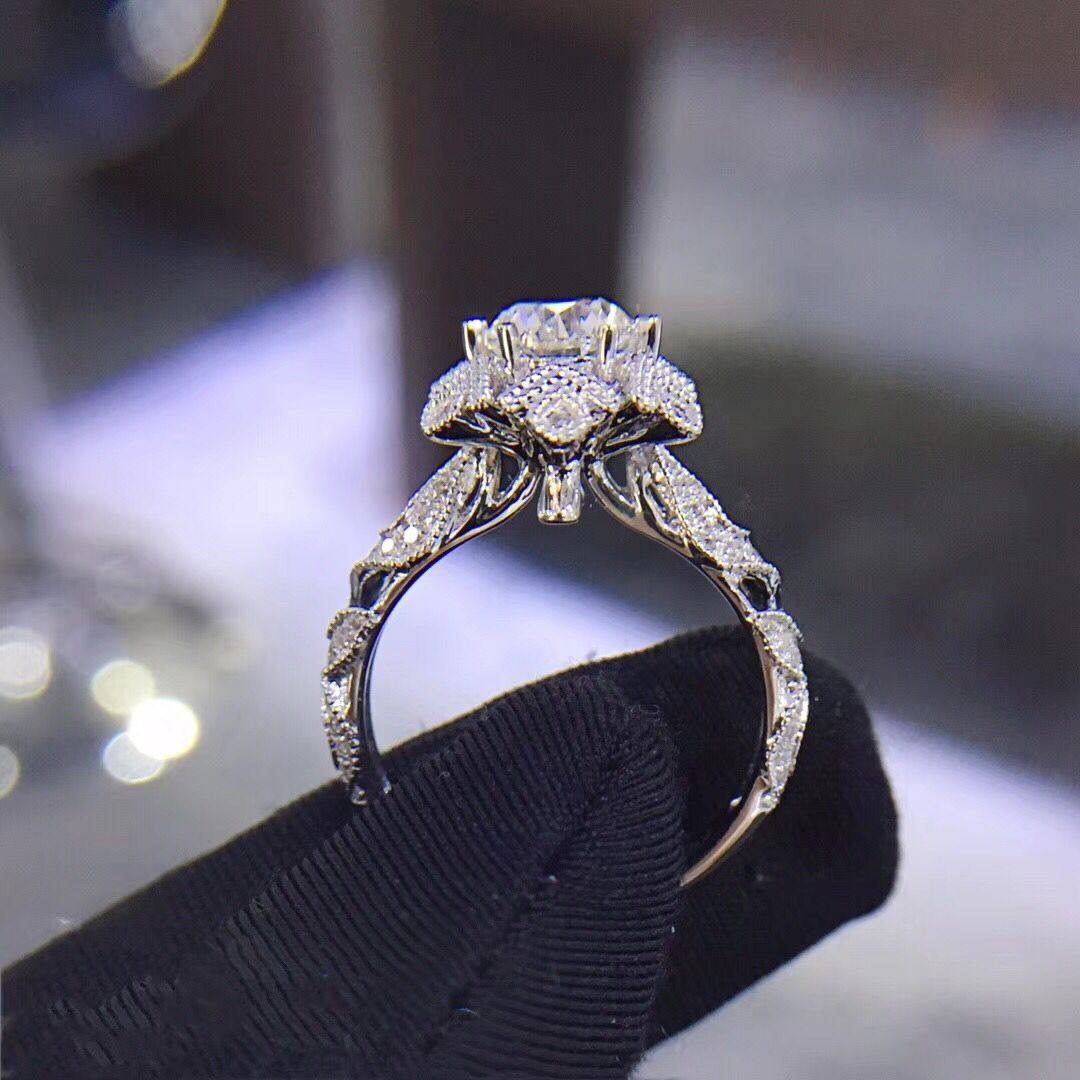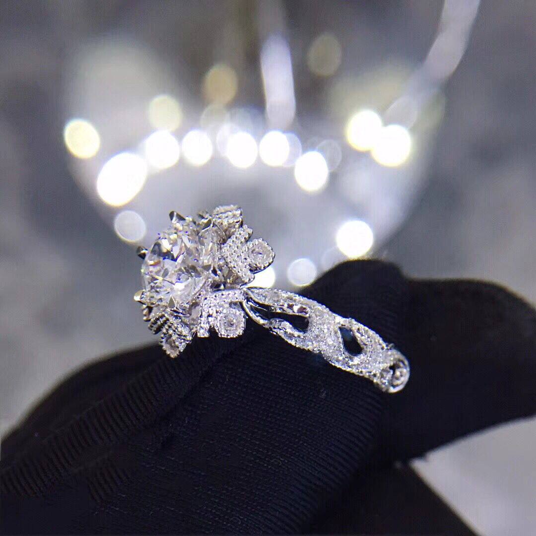 18K gold vintage lace marry diamond ring woman 30 % 50 % 1 carat snow - flower diamond ring