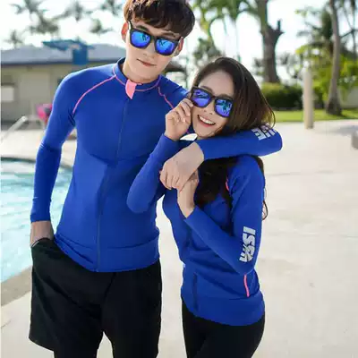 South Korea 2018 new wetsuit women's two-piece zipper beach sunscreen couple large size slim swimsuit men