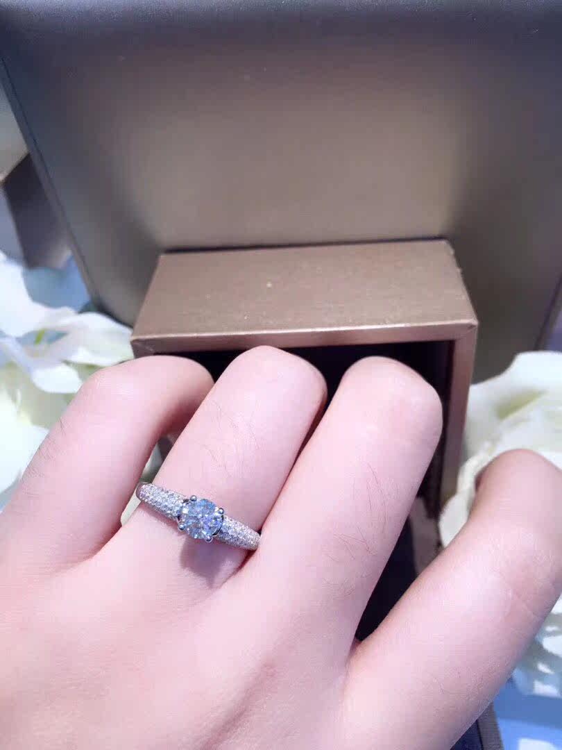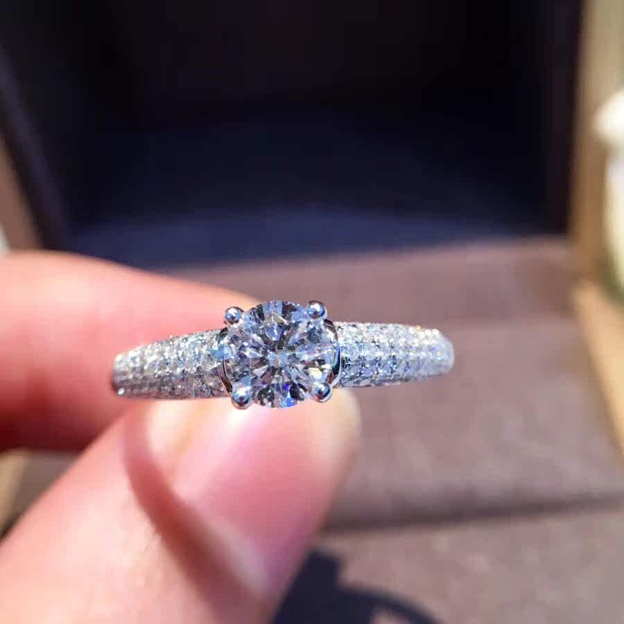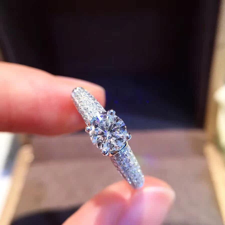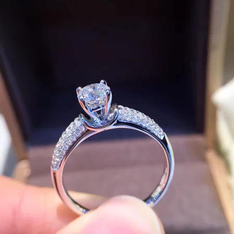 18K gold drill ring 30 points 50 Diamond ring Female one Clan wedding engagement The four-claw group inlaid with custom