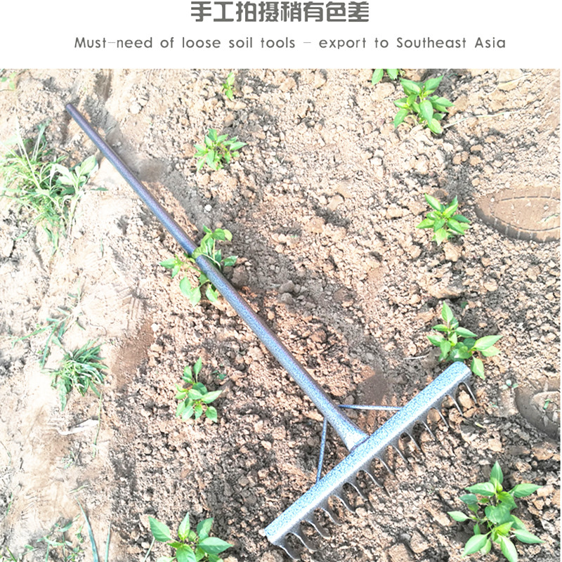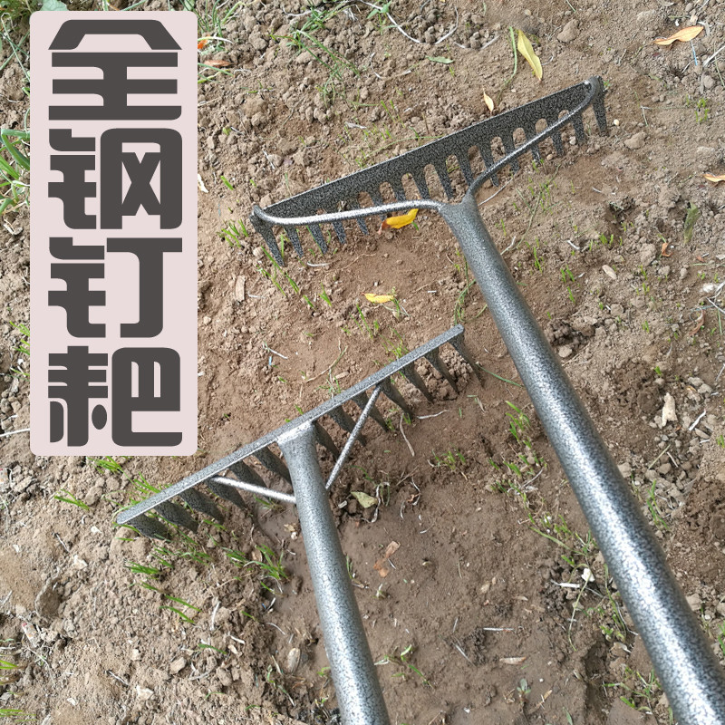 Flat rake manganese steel agricultural full steel nail harrowing 16 teeth vegetable garden Rake Garden Art Tools Farmers Harrowing Grass Harrowing Harrows