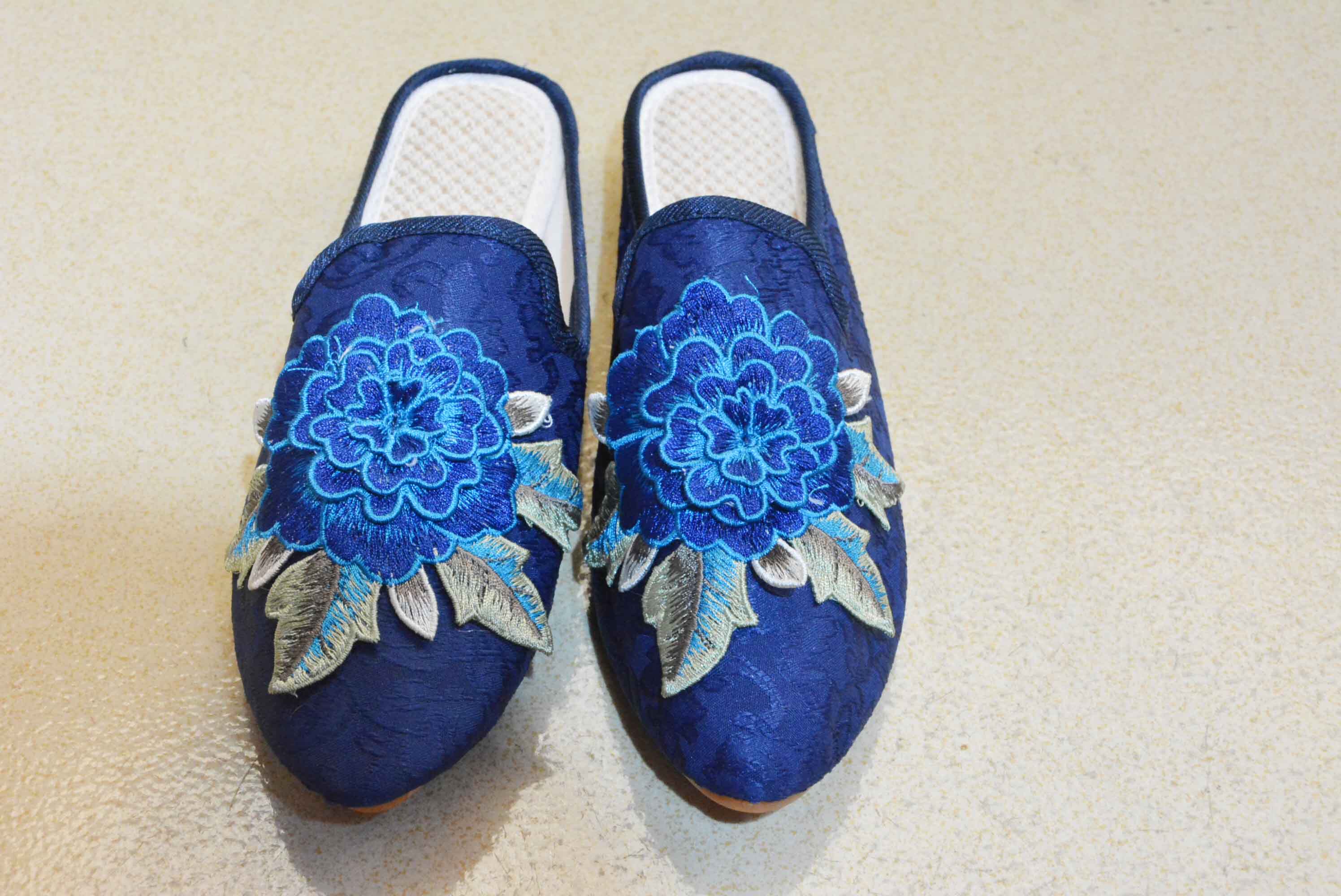 Old Beijing Cloth Shoes New Retro Embroidered Shoes Women's Home External Wearing Baotou Semi-Slipper National Wind Bull Gluten Bottom Cold Drag