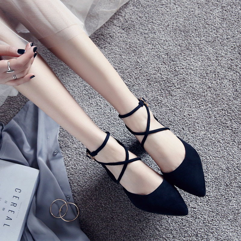 Small frescoed high heel shoe chic coarse heels Fairy Spring Autumn Season Hollow 100 Lap Strap 2021 New Pointy Bag Shoes Woman
