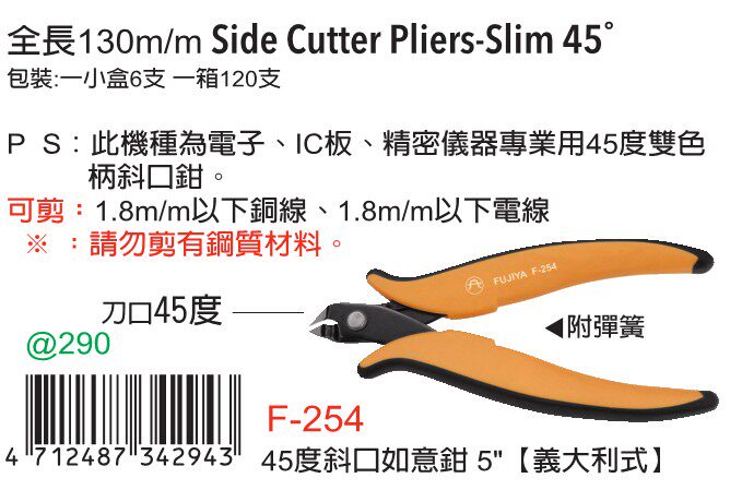 Taiwan imported original F-254 rich Asian FUJIYA Italian-style 45-degree oblique mouth Ruyi pliers 5