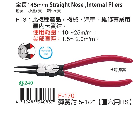 Taiwan imported original dress F-170 Fuya FUJIYA spring pliers snap spring pliers 5 inch inner card (straight crypt with HS)