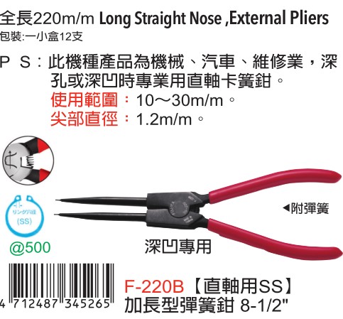 Taiwan imported original F-220B FUJIYA extended spring pliers (SS for straight shaft)