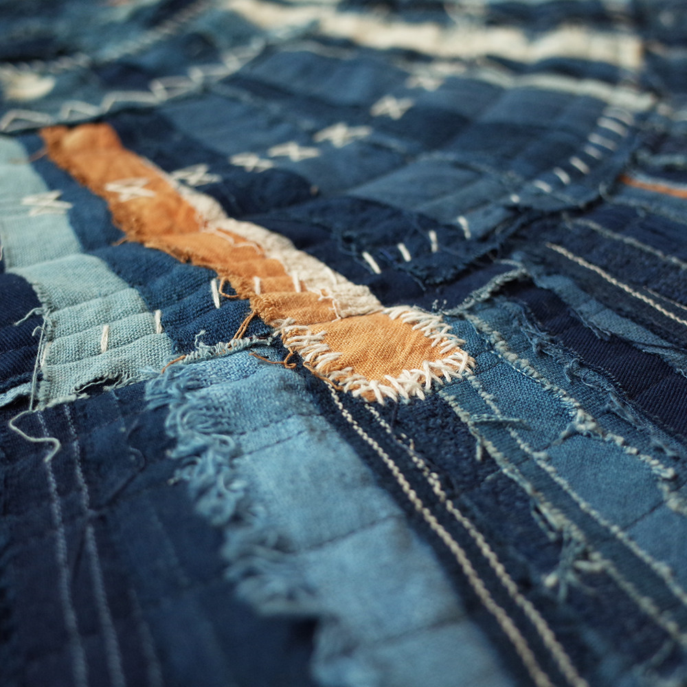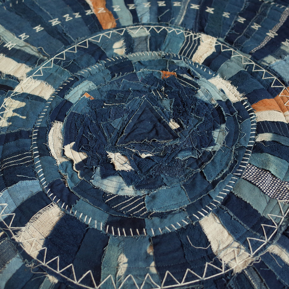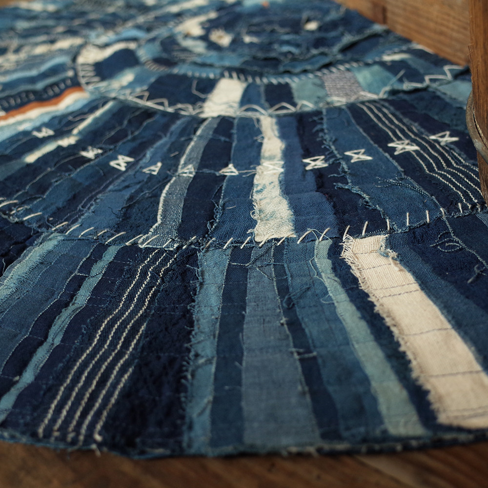 Leaning Mountain Hand Workers Blue Dye Plant Grass Wood Dyed Multicolored Irregular Splicing Feet Ground Mat Carpet Window Table Sofa Cushions