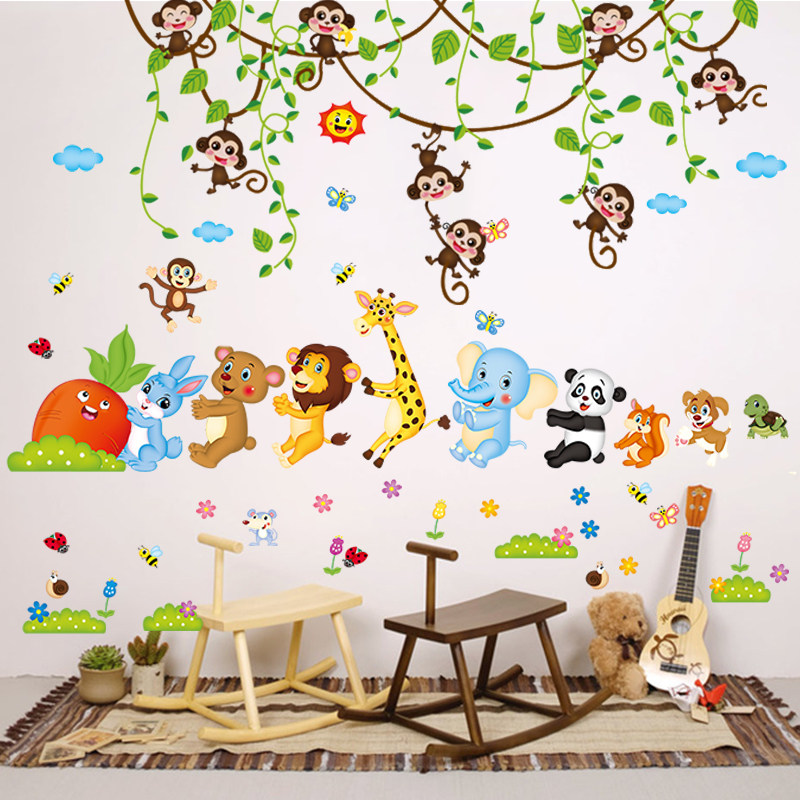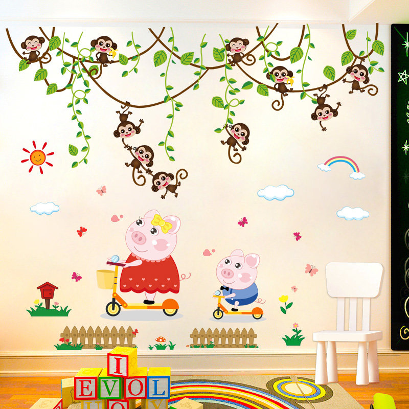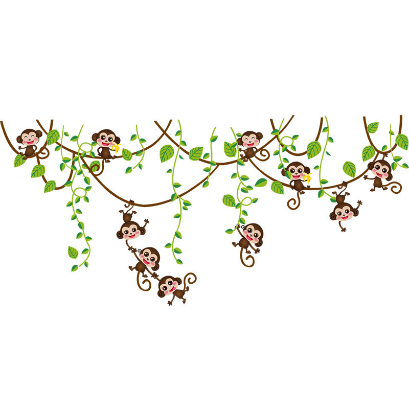 Cartoon monkey climbing vine wall sticker baby bedroom boy children's room wall top background wall decoration sticker self-adhesive