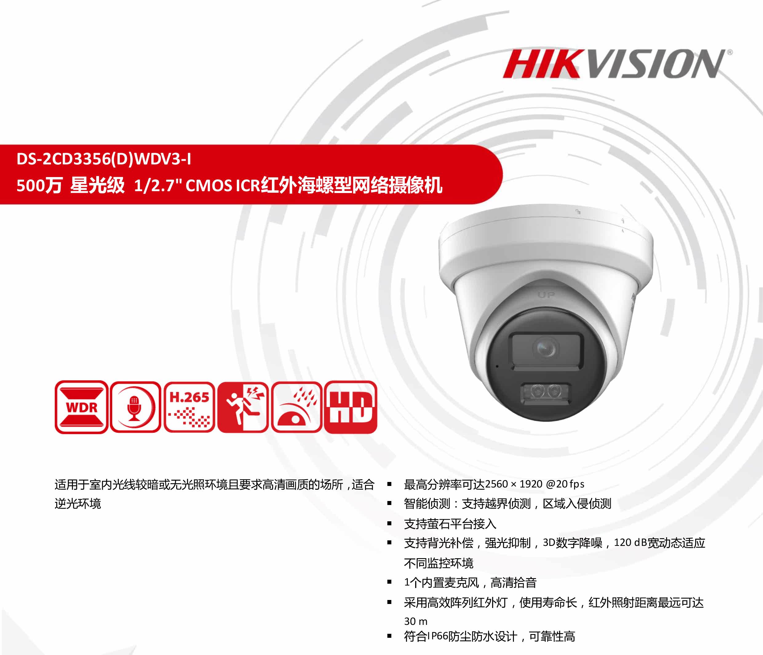 Hikvision DS-2CD3356WDV3-I 5 million star-level network high-quality camera supports POE