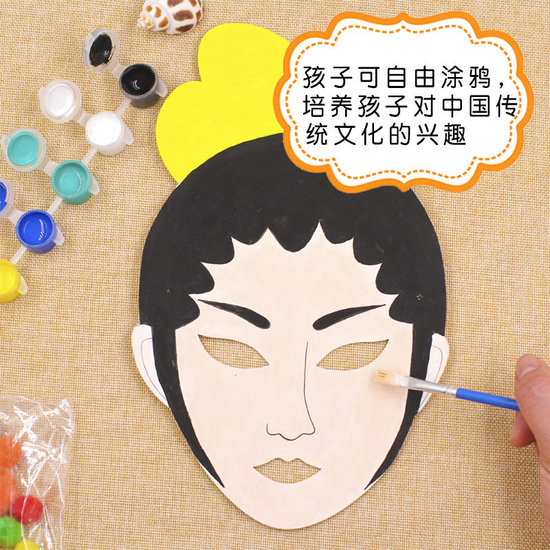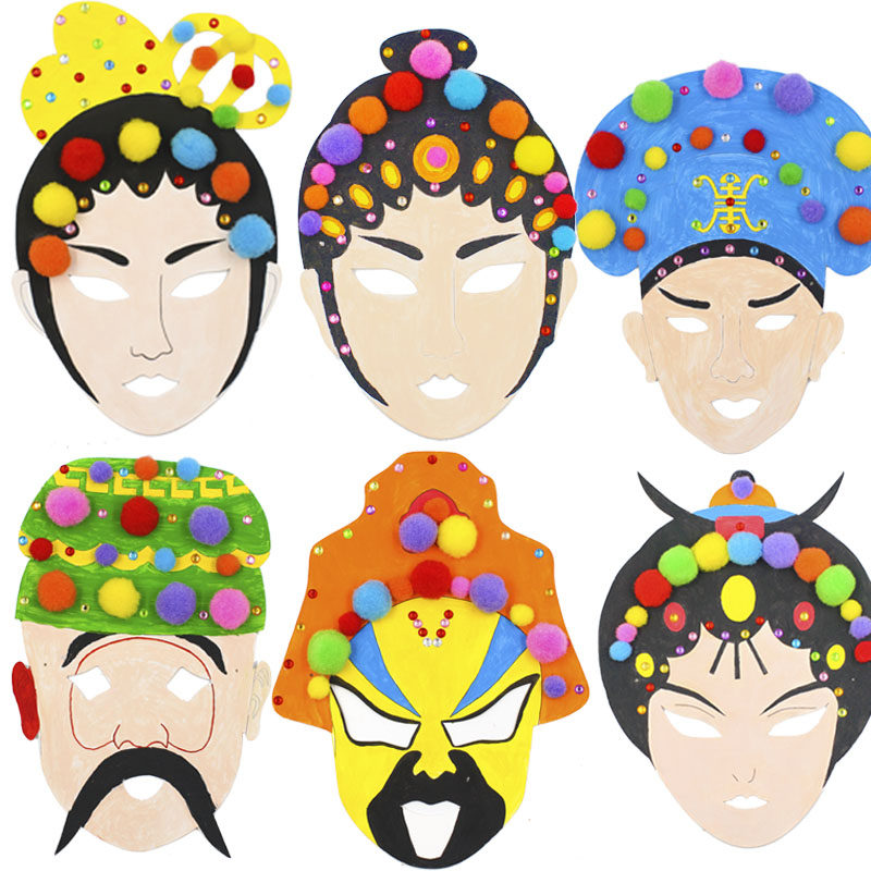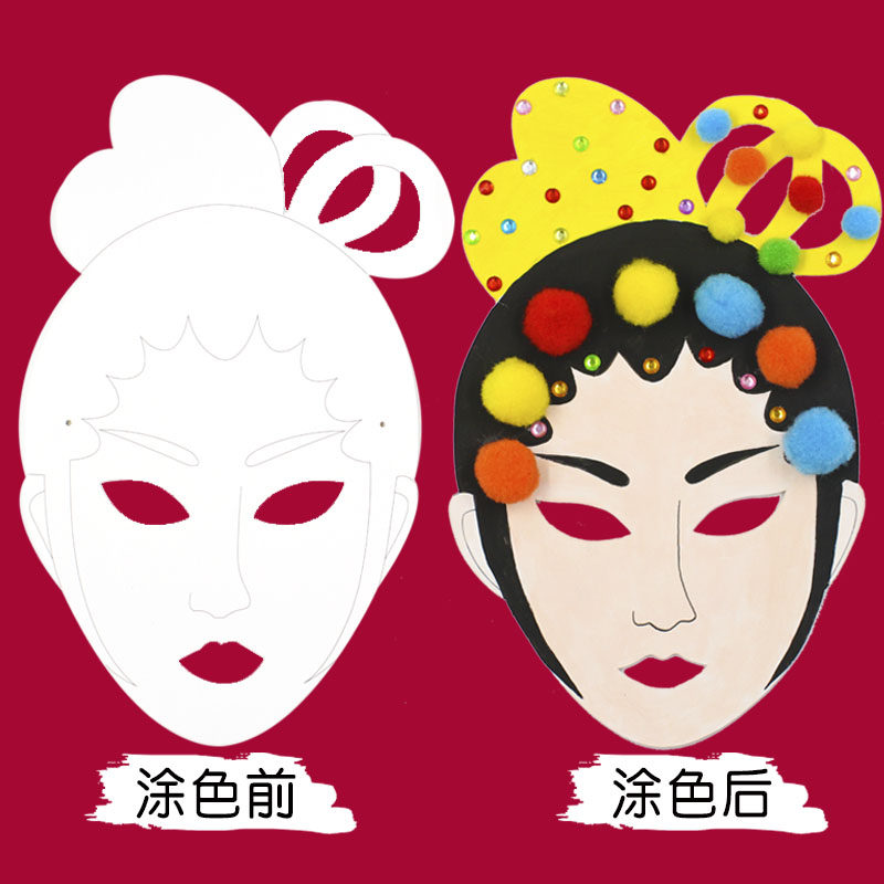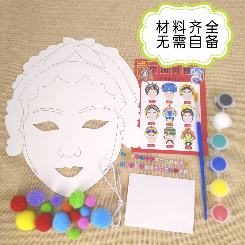 Hand-painted Peking Opera facial makeup DIY blank paper mask fur ball paste children's kindergarten handmade material package