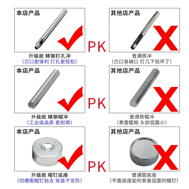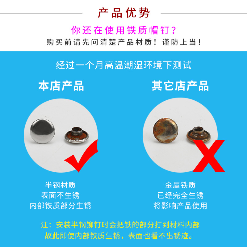 Double sided rivet diy bags leather Rinds Stainless Steel Flat Face Ram Cap Nails Hand Mounted Tool Suit
