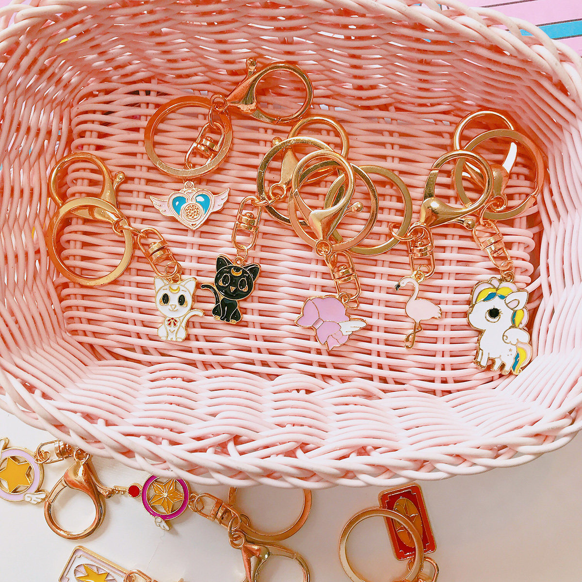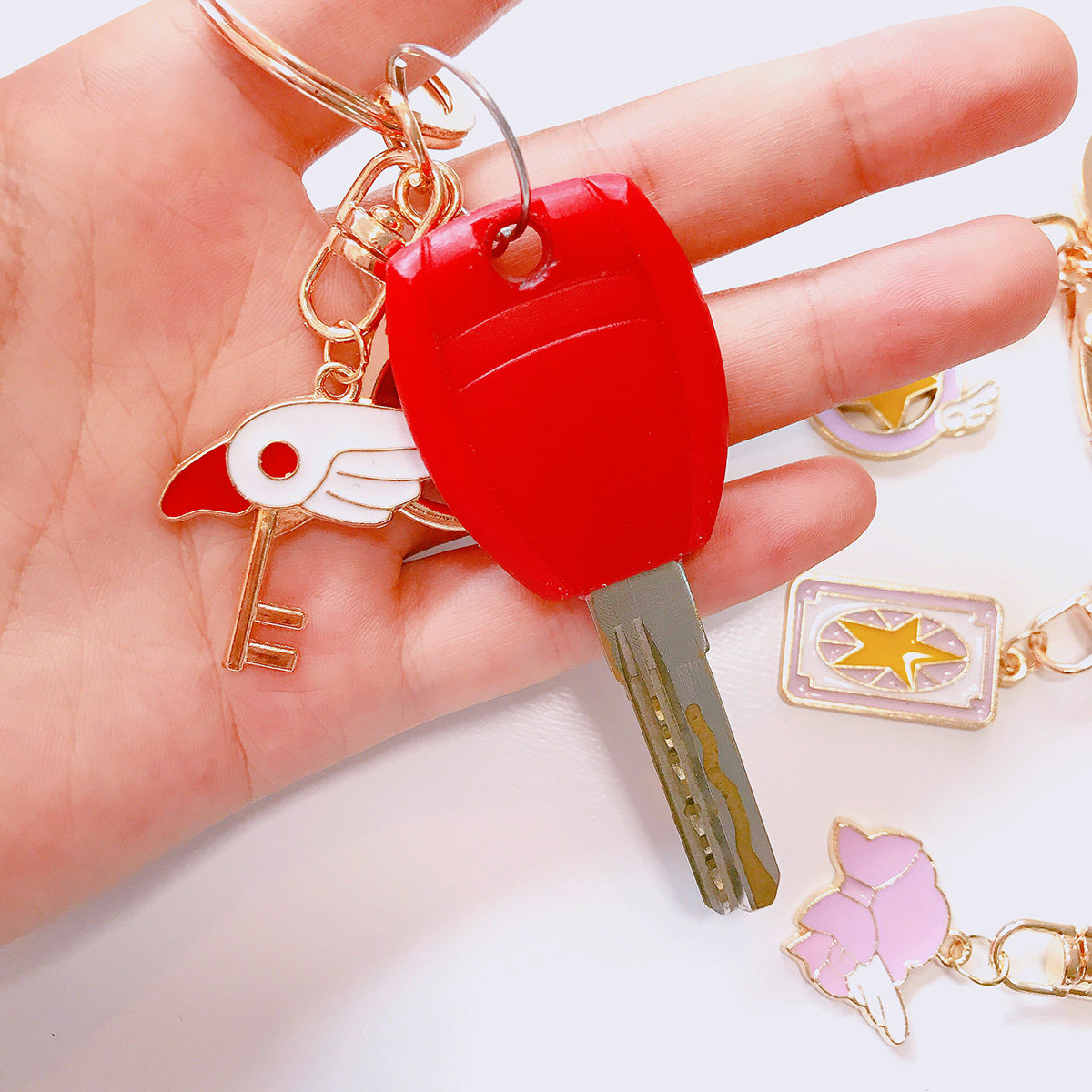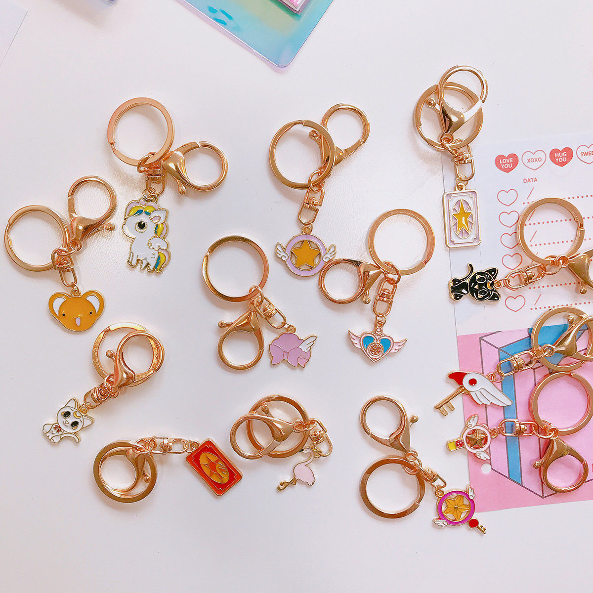 Japanese cartoon student keychain female creative cute girl heart metal key ring creative bag small pendant