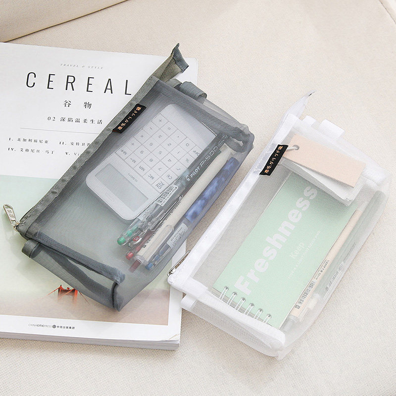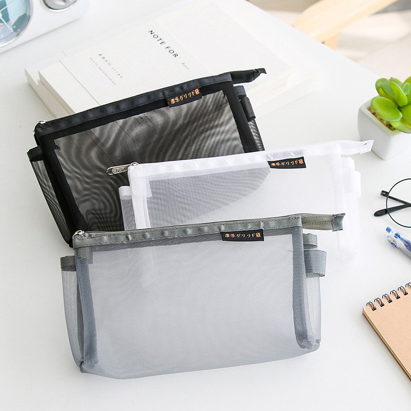 Yanle Nylon Mesh Transparent Pen Pouch Simple Stationery Cashier Bag Student Pen Case Nylon Mesh Wide Large Capacity
