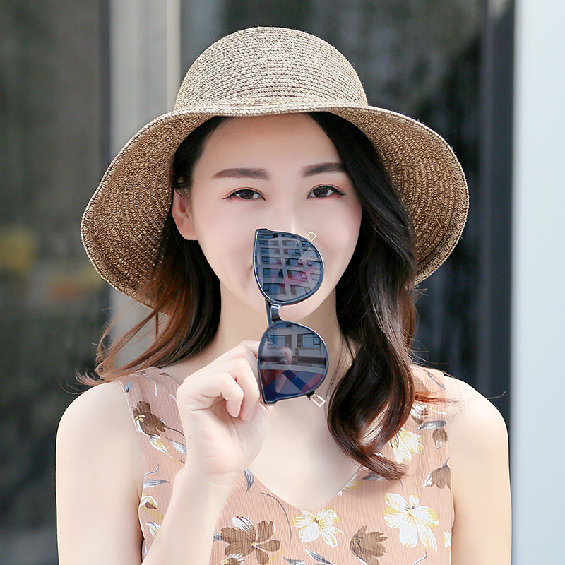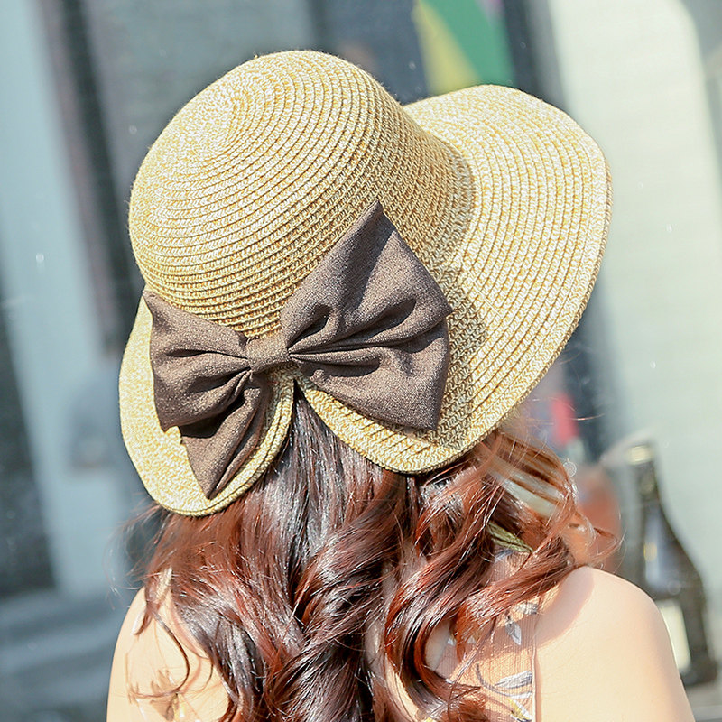 Sunhat women's travel foldable straw hat beach sunscreen sun hat bow Korean version trend big brim hat