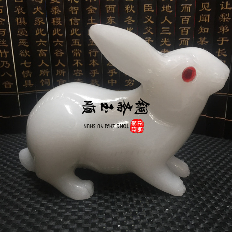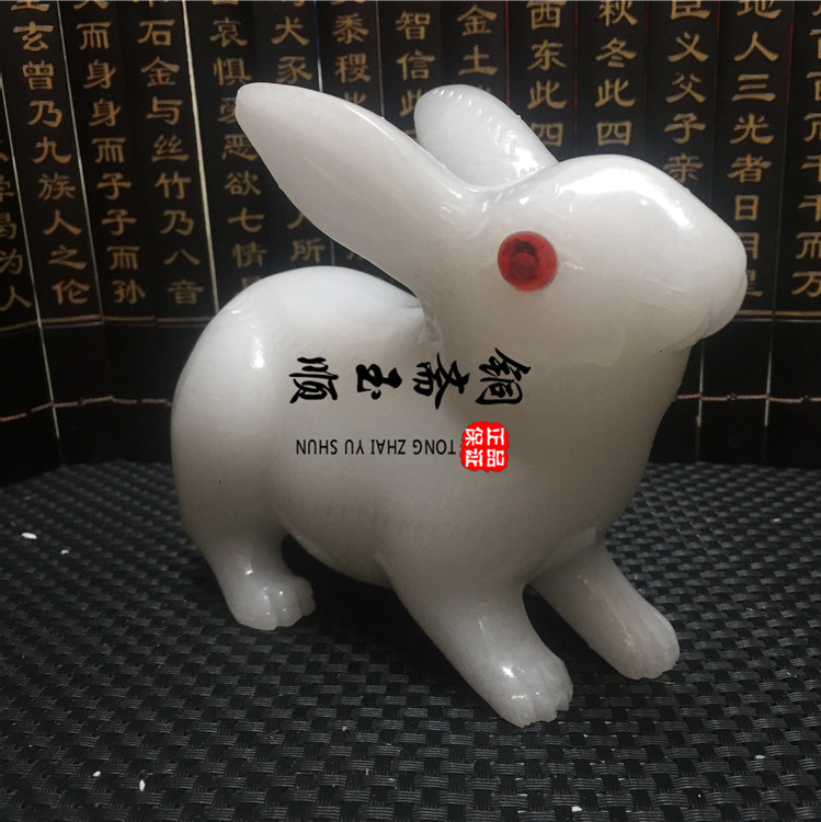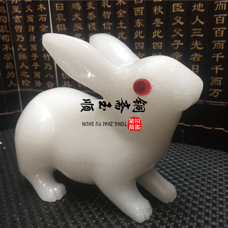 Afghanistan White Jade Rabbit Pendulum Wok Jade Zodiac Zodiac Zodiac Rabbit living room Xuanguan Decorative Pendulum decoration Rabbit Crafts Gift Hem