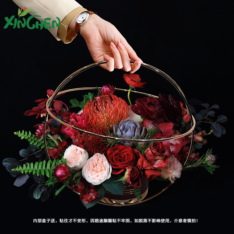 Hinchen Gilded Geometric Flower Arrangement Shelf Evergreen Flower Metal Flower Arrangement Basket bouquet packaging box Flower Art material Teachers' Day