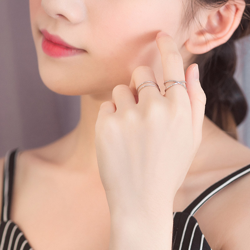 Pure silver X line opening ring pure silver double wire opening ring