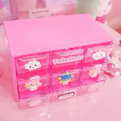 Melody pink girl heart desktop drawer Nine Palace grid storage box cosmetics jewelry storage storage storage box