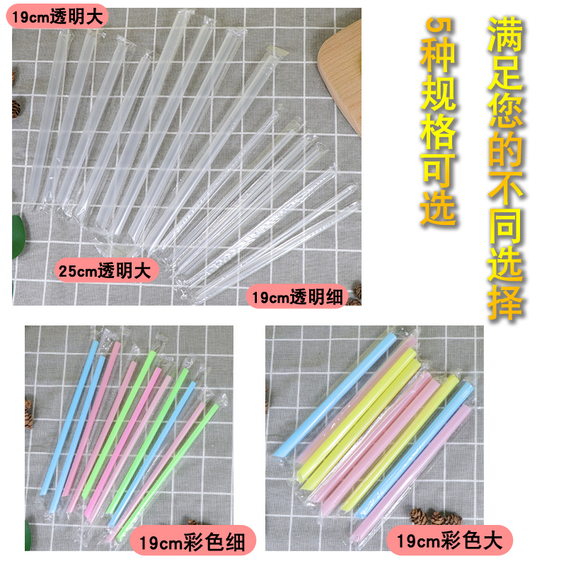 Pearl Milk Tea Straw Thickness Disposable Color Transparent Juice Drink Lengthened 19cm Private independent packaging
