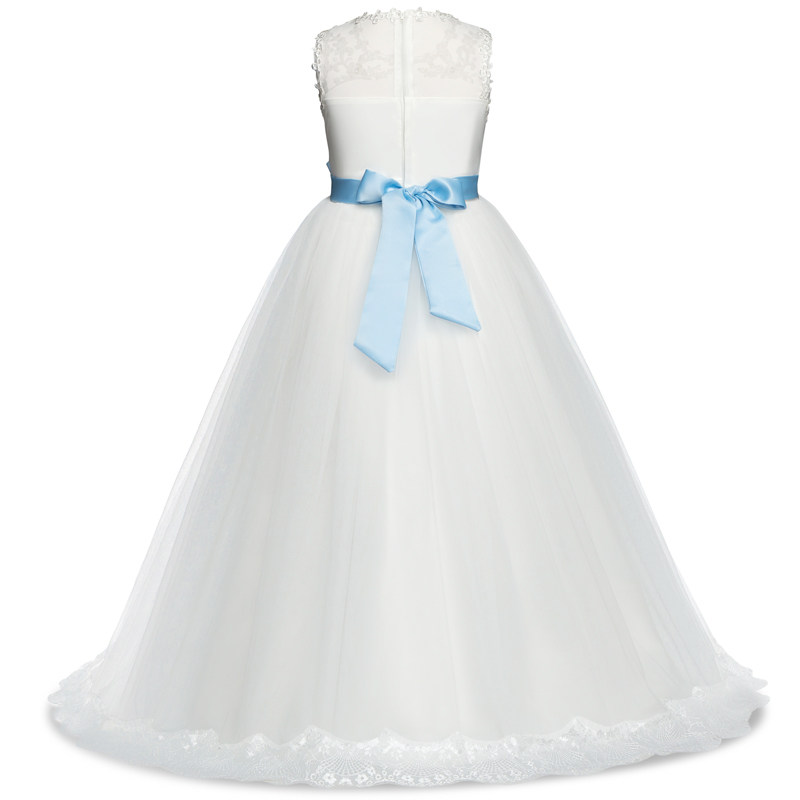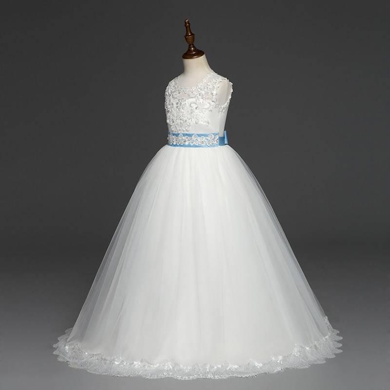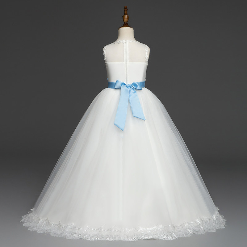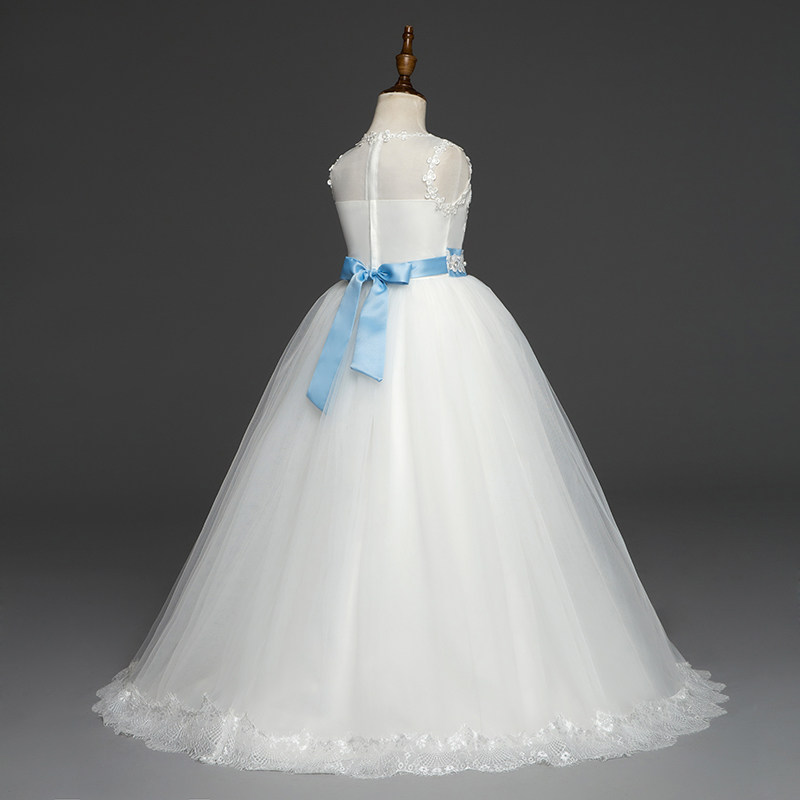 Children's dress girls trailing skirt evening dress princess long skirt autumn mid-autumn big children piano performance host white wedding dress