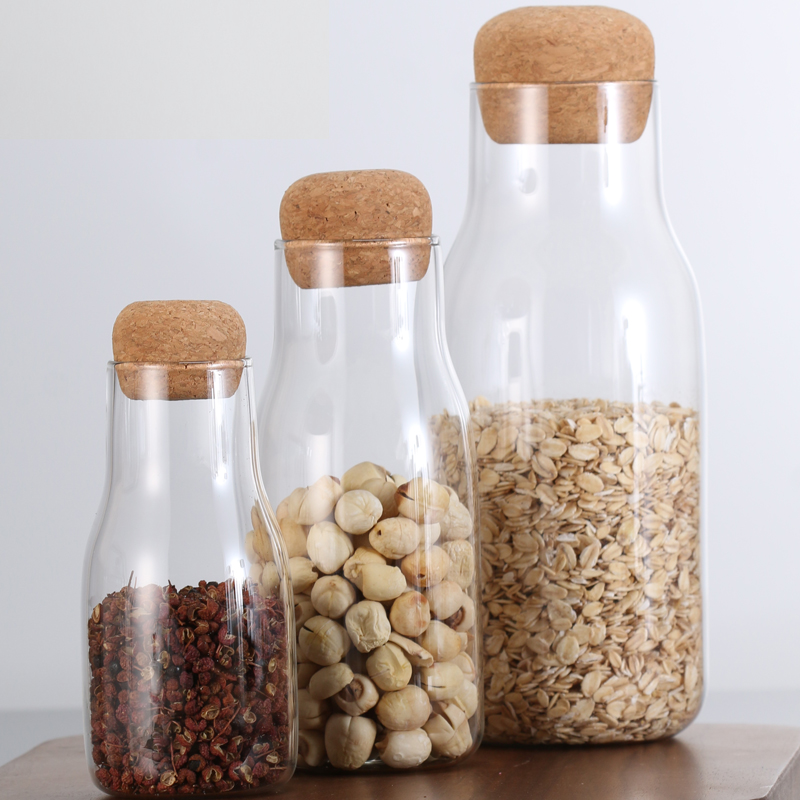 Storage jar Lead-free glass household dried fruit grains tea storage bottle Cork coffee bean spice sealed jar