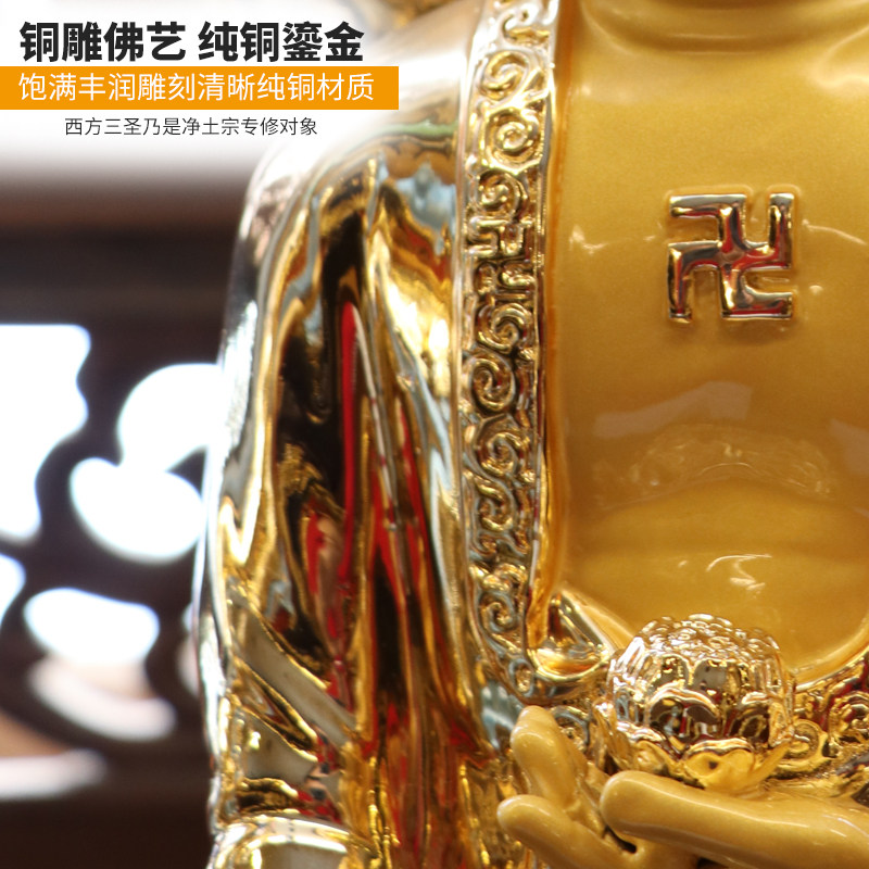 Western three holy bronze statues pure copper Avalokitesvara Bodhisattva gold-plated three holy statues of the great potential to Bodhisattva Buddha statue Amitabha
