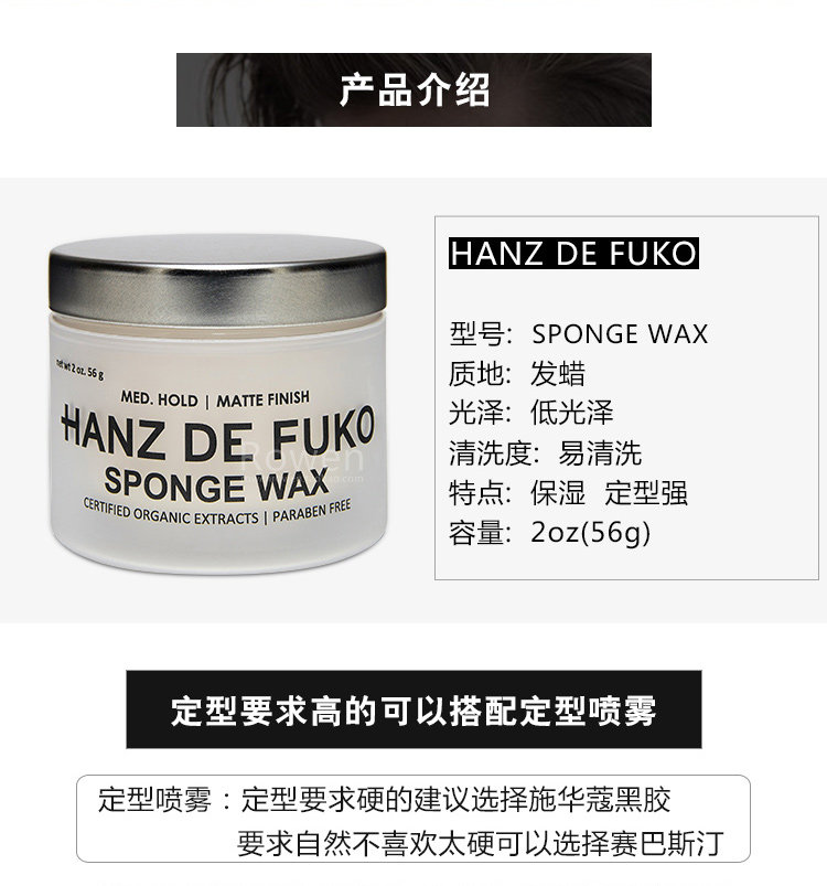 HANZ DE FUKO SPONGE WAX WATER-based STYLING HAIR WAX for MEN