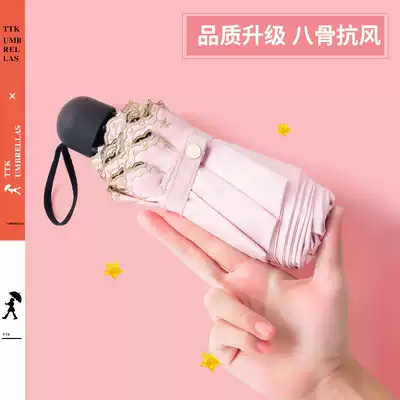 TTK parasol Ultra-light five-fold umbrella female sunscreen anti-UV barometer and rain dual-use small and convenient capsule umbrella