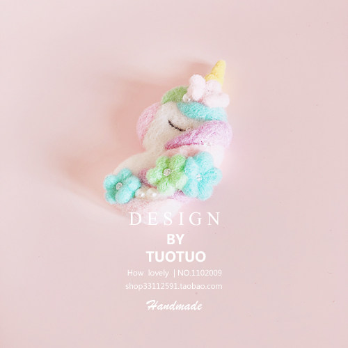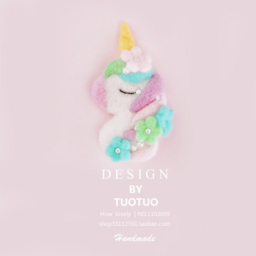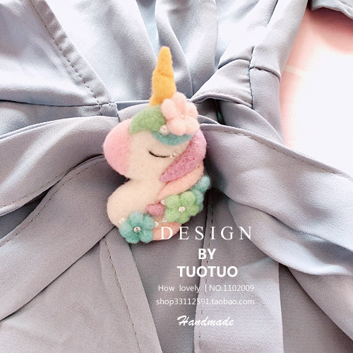 japanese hansen style elegant brooch unicorn wool felt finished handmade diy wool felt hair clip accessories dream trapping net