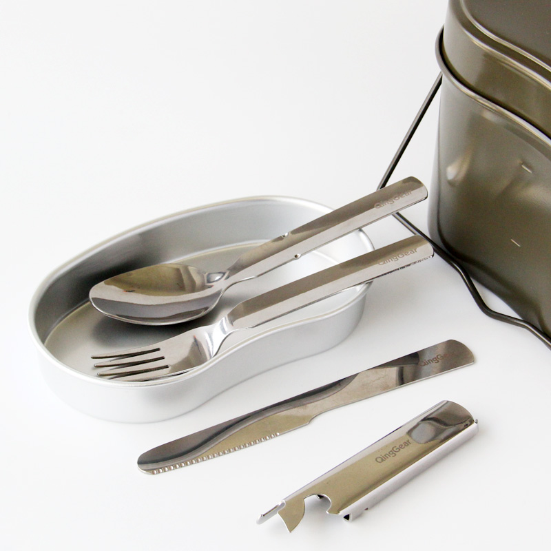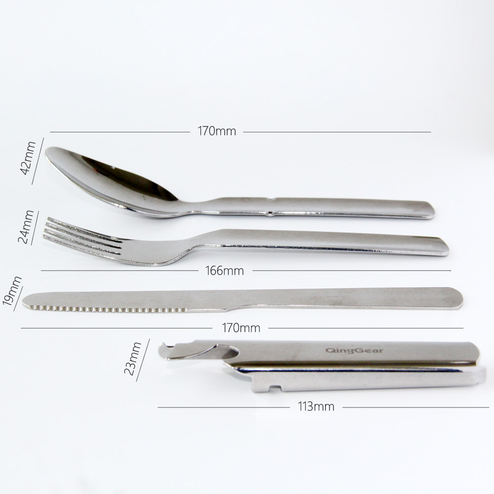 Versatile outdoor dining knife with stainless steel with open bottle opener portable travel camping cutlery set of four pieces