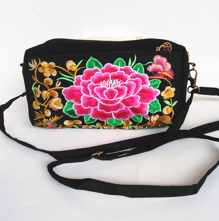 Ethnic style double-sided embroidered bag Vintage clutch bag Shoulder bag Casual bag crossbody embroidered bag 3-layer zipper wallet