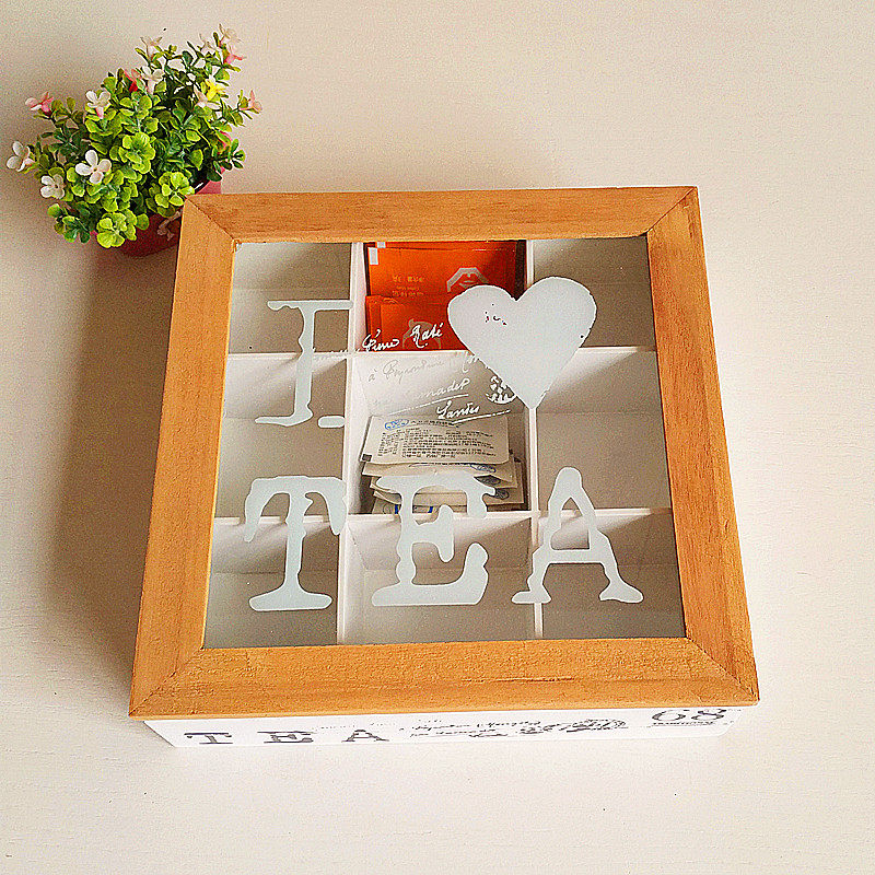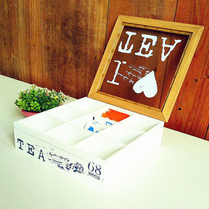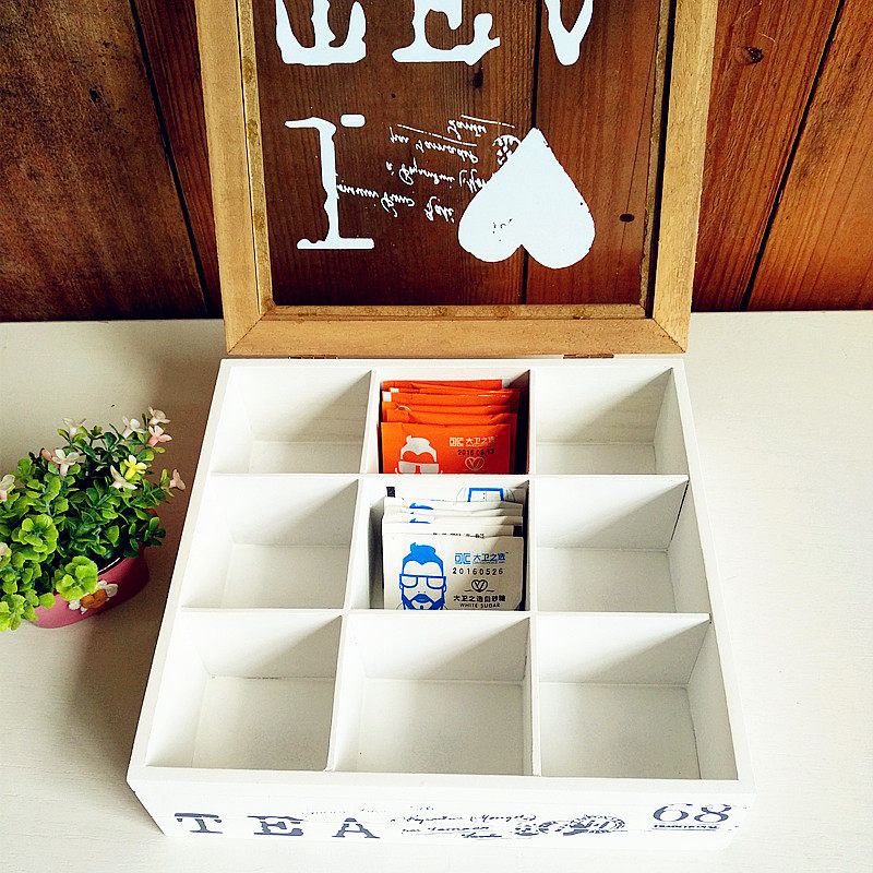 Nordic desktop storage box finishing box Solid wood 9 grid coffee tea bag box Creative home decoration ornaments