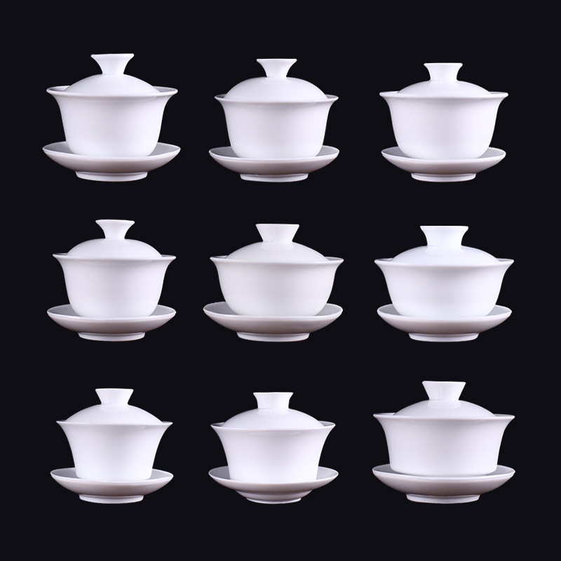 Dehua white porcelain size three-cai Gaiwan LOGO private custom lettering DIY creative personality small gift
