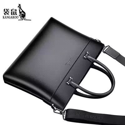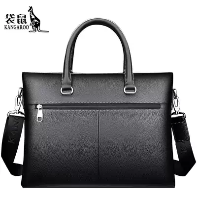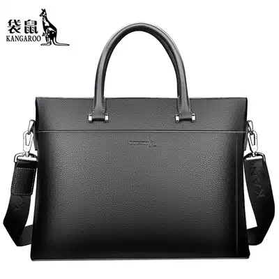 Kangaroo men's bag handbag men's leather first layer cowhide briefcase business casual cross section shoulder bag shoulder bag tide