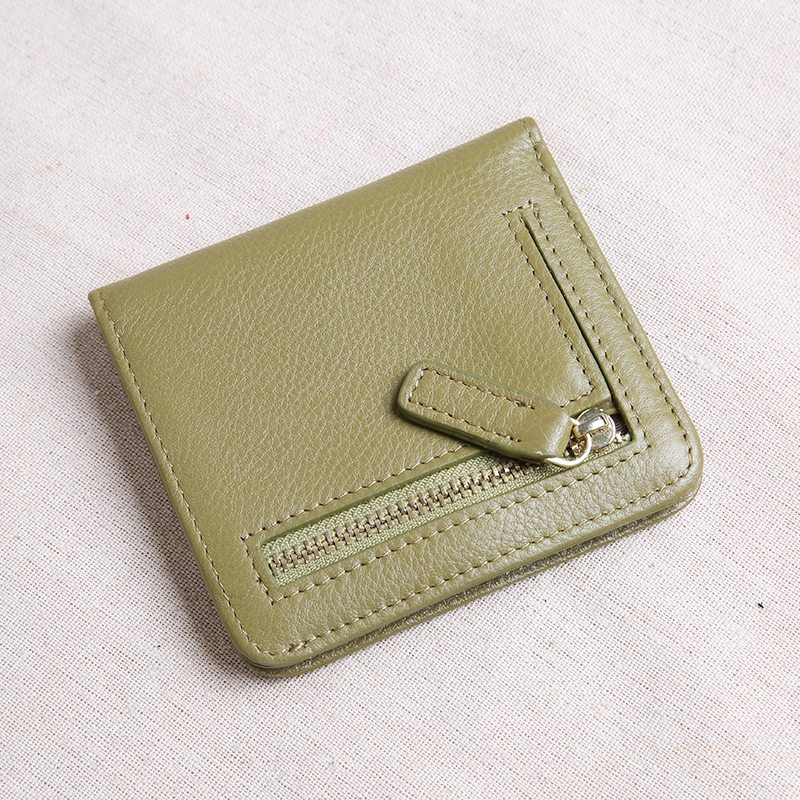 2022 new leather clip woman short leather two-fold pull chain buckle ultra-thin small purse small fresh money clip zero wallet