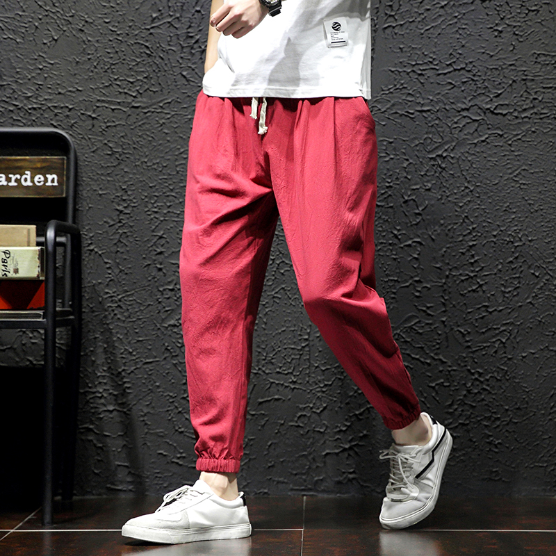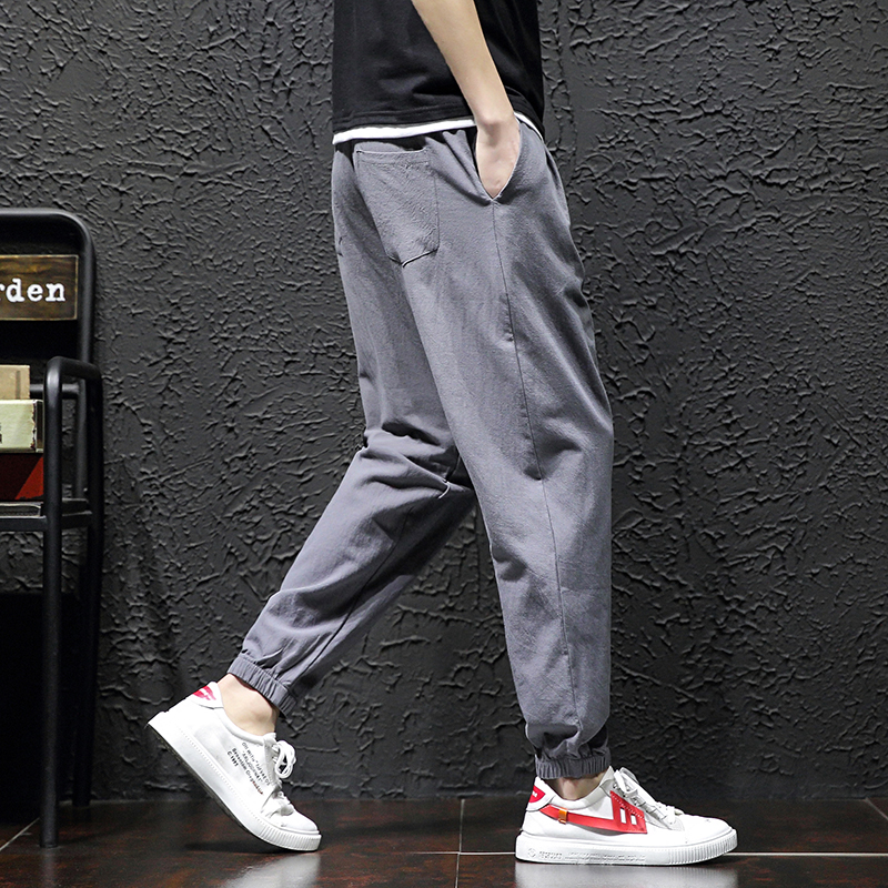 Summer ninth pants men's loose Korean style trendy harem pants men's thin small feet sports cotton and linen casual pants