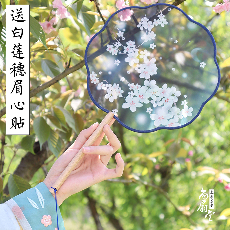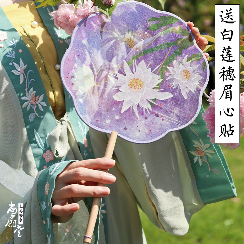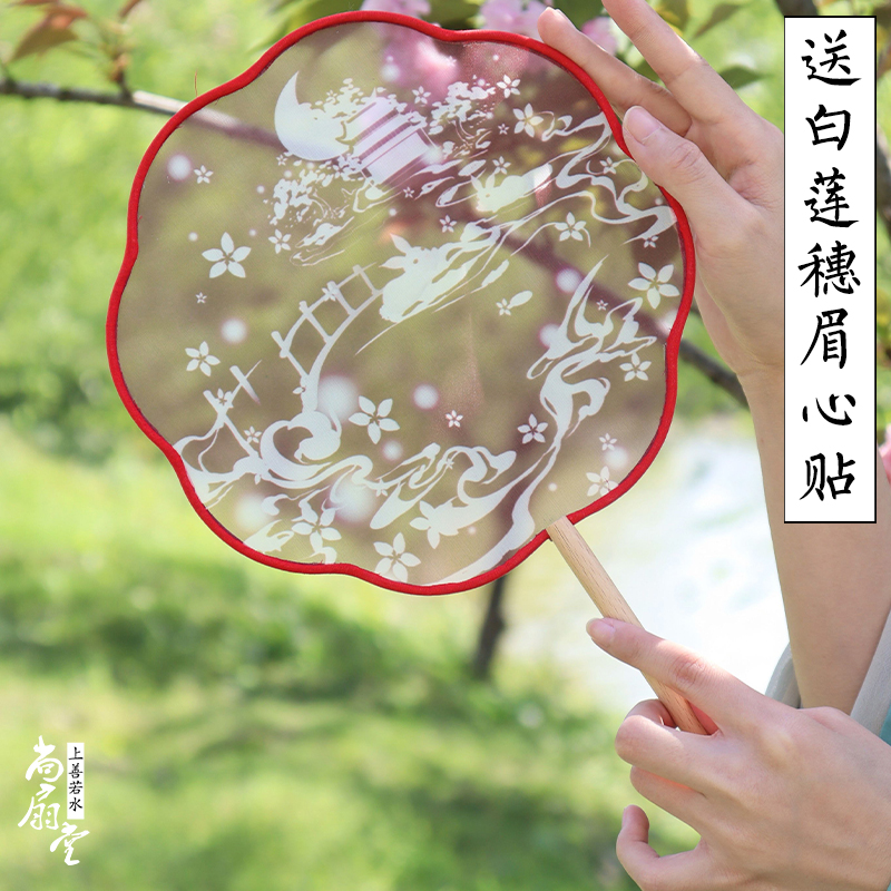 Silk-through-group fan bifacial translucent fan ancient wind Han suit female fan medium wind round fan classical palace fan summer