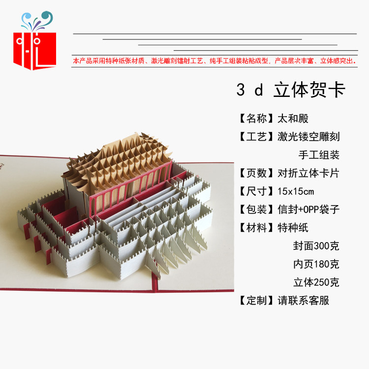 Three-dimensional greeting card Beijing Too and the Palace Forbidden City China Customs architecture Cut paper Thermal pin 3D Cubism National Day Little Cards-Taobao