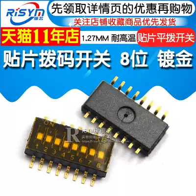 Black patch Dip switch 1 27MM pitch 8 bit 8p patch flat dial switch high temperature gold plating