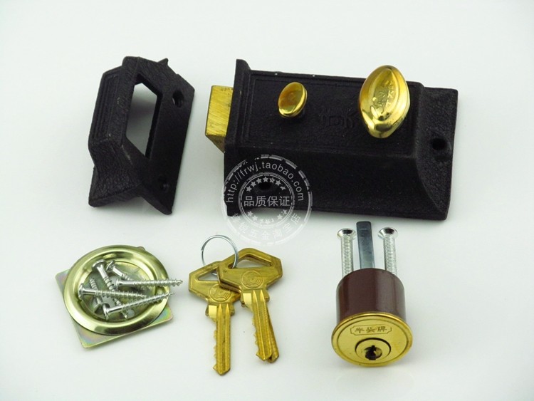 Bull head brand old-fashioned double insurance anti-theft door lock Two insurance door lock wooden door lock Copper core dark lock