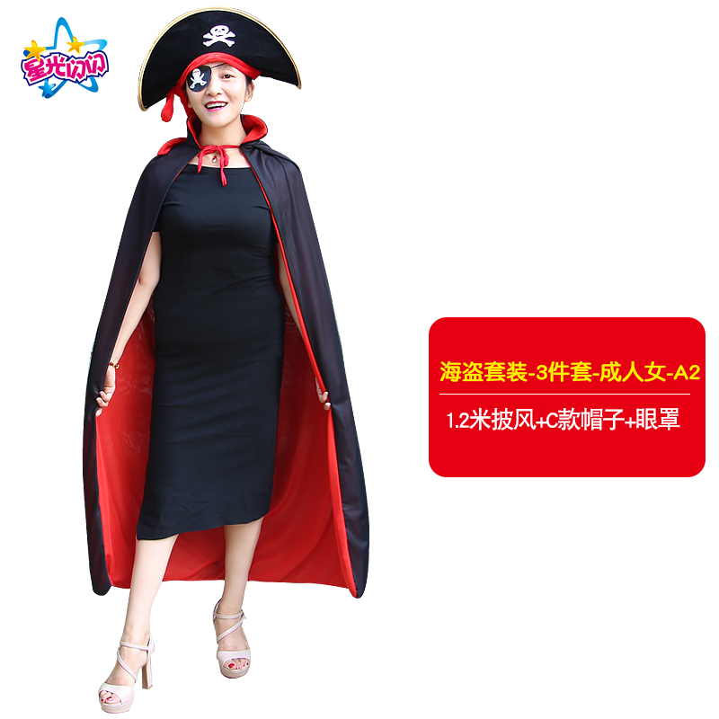Six Section Pirate Clothing Adult Children Performance Cloak Suit Male Girl Jack Captain Clothing Black Cape