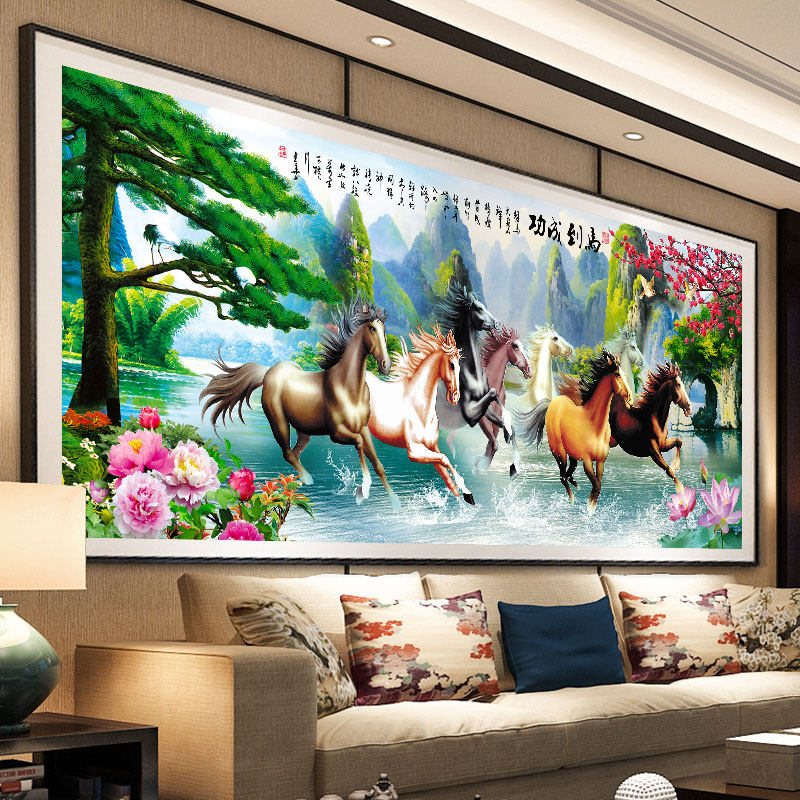 2021 new diamond painting full diamond living room eight Jun map paste diamond cross stitch horse to success point masonry show landscape 5D
