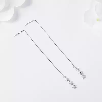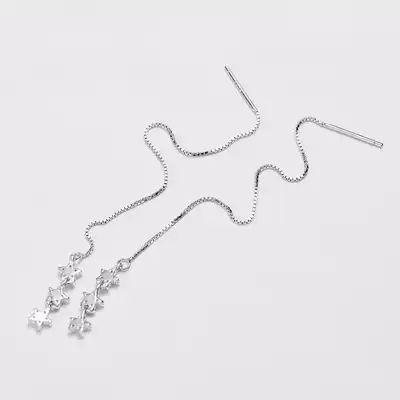 Exquisite sparkling diamond-set little star all-body 925 sterling silver plated platinum earrings long version earrings
