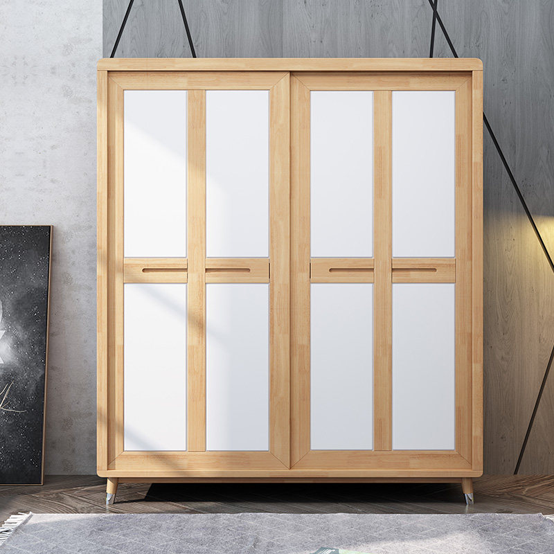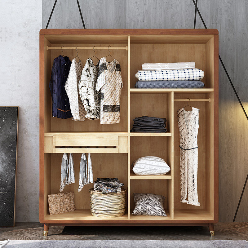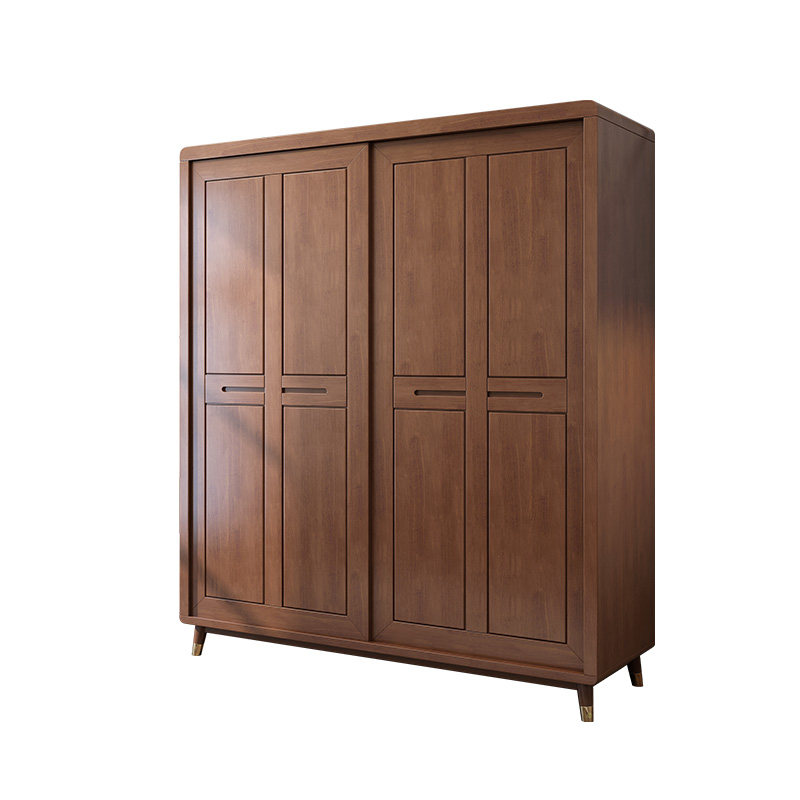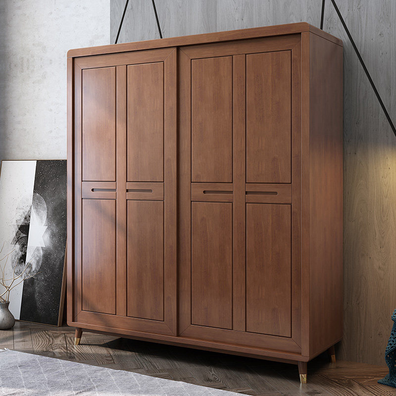 Nordic modern minimalist solid wood wardrobe small apartment sliding door wardrobe walnut color sliding wardrobe bedroom furniture